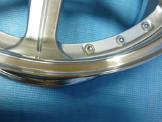| ▲Before/このままでは走行し続けるとタイヤや車体にも悪影響を及ぼし、大変危険です。 | ▲After/新品を付け替えただけでは?いいえ。完全に元のパーツです。職人が慎重に元の正円に戻しました。これでまた安全な走行が可能です! |